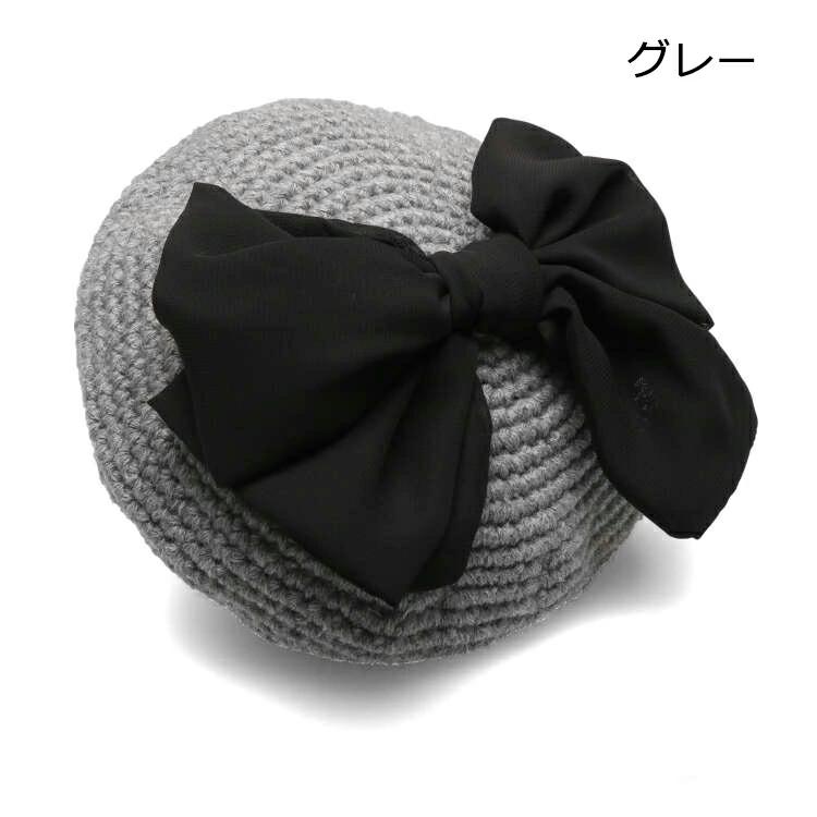てっぺんにふんわりシフォンの大きなリボンの付いたアクリル素材のニット帽、帽子。個性的な形なのでコーディネートのアクセントにオススメ!どんなアイテムやカラーとも合わせやすいグレー、コン、ベージュの3色展開。【アイテム】雑貨 カジュアル お洒落 オシャレ かわいい 可愛い 普段着 デイリーウェア お出かけ 子ども こども 女児 女の子 ガールズ キッズ ベビーサイズ 幼稚園 保育園 通園 旅行 2023年秋冬物新作 丸高衣料 プレゼント ギフト 赤ちゃん服 ベビー服 贈り物 グレー 灰色 コン ネイビー 紺色 ベージュ りぼん キッズズー