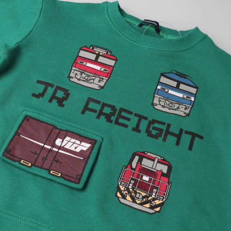 人気のJR貨物列車シリーズ。コンテナのプリント部分がフラップになっていて、めくると車が出てくる仕掛けが楽しいトレーナー、スウェット。裏毛素材で秋から春まで長く着られます。【アイテム】長袖 ロングスリーブ トップス カジュアル お洒落 オシャレ かっこいい かわいい 可愛い 普段着 デイリーウェア お出かけ着 お外遊び着 子ども こども 男児 男の子 ボーイズ キッズ ベビーサイズ トドラーサイズ 幼稚園 保育園 小学校 通園 通学 小学生 2023年秋冬物新作 丸高衣料 鉄道 子鉄 車両 電車 電鉄 トレイン オフホワイト 白色 グリーン 緑色 ムージョンジョン