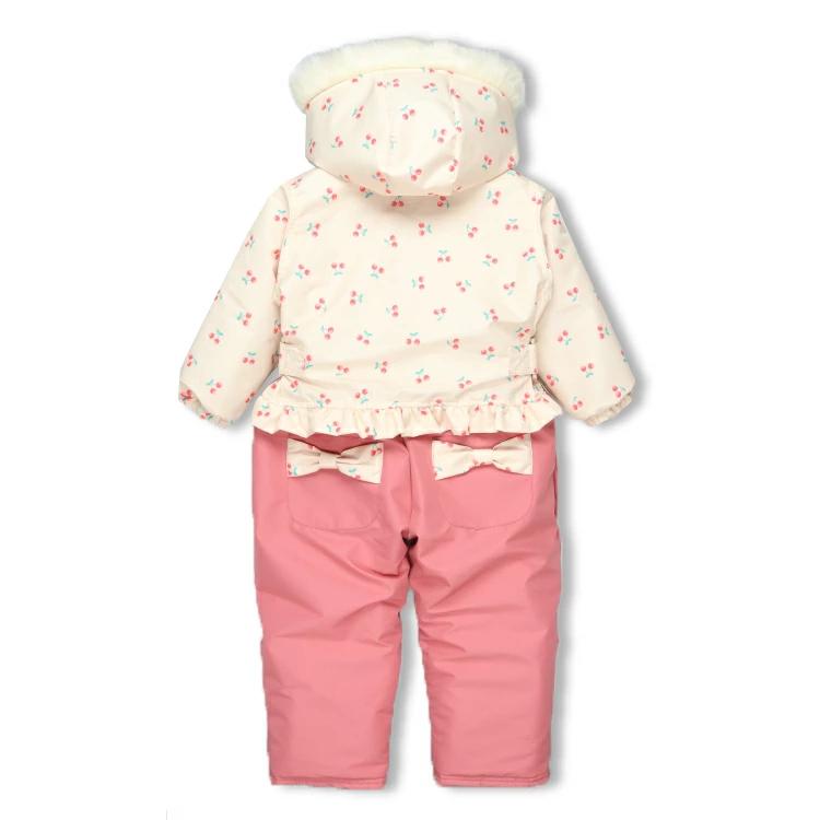 スノーコンビ・ジャンプスーツ・スキーウェアタイプのつなぎ!雪遊びやお外遊びにも!!足部分は二重構造になっているので、ナイロン部分を中に入れてスノーブーツを履いて、スノーブーツの上から被せると足元から雪が入りにくい!ポケットの中のひも、脇部分のひもを調節する事で、手足部分の長さ調節も可能です。お洋服の上から着ることを考えて作られており、大き目の作りなので、ジャストサイズをオススメします。通園、通学の際にもぴったり☆フードはボタンで取り外し可能です!首元衿内側部分はフリース素材で首元も暖か♪表は耐水圧2000mmです!(完全防水ではありません。撥水スプレーとの併用がオススメです。)同じチェリー柄で脚絆、足カバー(M63881)やスノーグローブ、手袋(M63880)もあるので、更なる防寒も可能です!女の子らしいチェリーの総柄と無地の切替デザイン。【アイテム】 カジュアル お洒落 オシャレ かっこいい かわいい 可愛い 普段着 デイリーウェア お出かけ着 ロングスリーブ 長袖 アウター ブルゾン ジャンパー コート ジップアップ フロントジップ 子ども こども 女児 女の子 ガールズ キッズ ベビーサイズ トドラーサイズ 幼稚園 保育園 小学校 通園 通学 小学生 2024年秋冬物新作 丸高衣料 切替 雪遊び スキー スノーボード ソリ遊び ムージョンジョン サクランボ さくらんぼ 果物 フルーツ ハート オフホワイト 白色 ラベンダー パープル 薄紫色