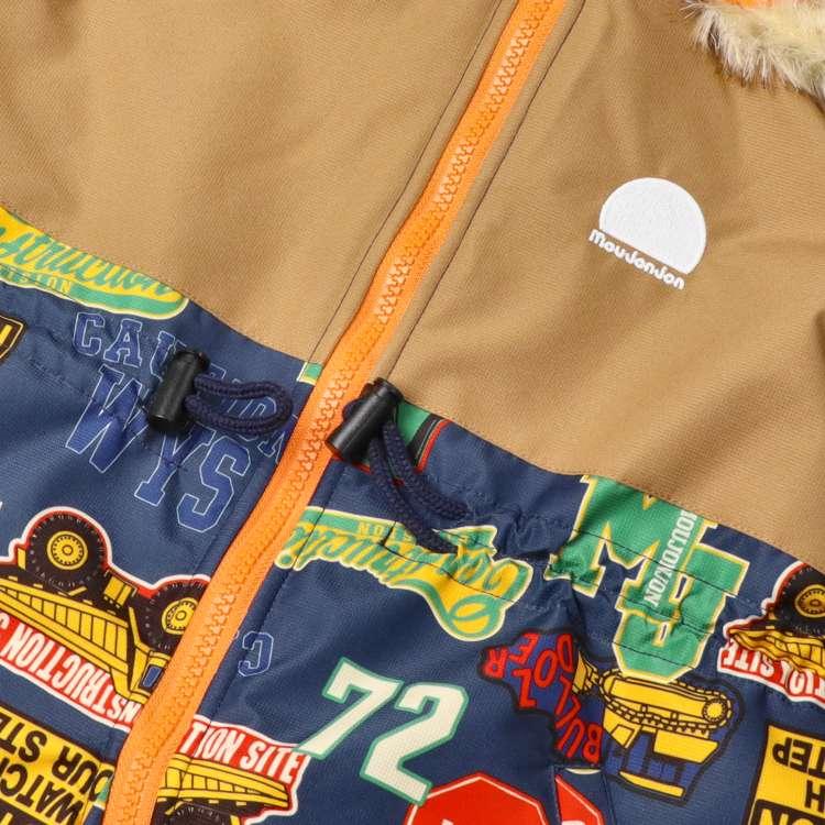 今年もスノーコンビ・ジャンプスーツ・カバーオール・スキーウェア・つなぎを入荷しました♪雪遊びにもおすすめ!!身頃裏地はあったかフリース素材になっています☆足部分は二重構造になっているので、ナイロン部分を中に入れてスノーブーツを履いて、スノーブーツの上から被せると足元から雪が入りにくい!洋服の上から着ることを考え、大き目に作られているので、ジャストサイズをお勧めします。別売りですが、同柄で脚絆、足カバー(M53882)やスノーグローブ、手袋(M53880)もあるので、更なる防寒も可能です!表は耐水圧2000mmの防水加工です!(完全防水ではありません。撥水スプレーとの併用がオススメです。)男の子に人気の働く車にロゴの総柄デザイン。フードには耳付きで可愛い!【アイテム】 カジュアル お洒落 オシャレ かっこいい かわいい 可愛い 普段着 デイリーウェア お出かけ着 ロングスリーブ 長袖 アウター ブルゾン ジャンパー コート ジップアップ フロントジップ 子ども こども 男児 男の子 ボーイズ キッズ ベビーサイズ トドラーサイズ 幼稚園 保育園 小学校 通園 通学 小学生 2024年秋冬物新作 丸高衣料 ネイビー 紺色 カーキグリーン 深緑色 スキー スノーボード ムージョンジョン 工事車両 建機 ブルドーザー