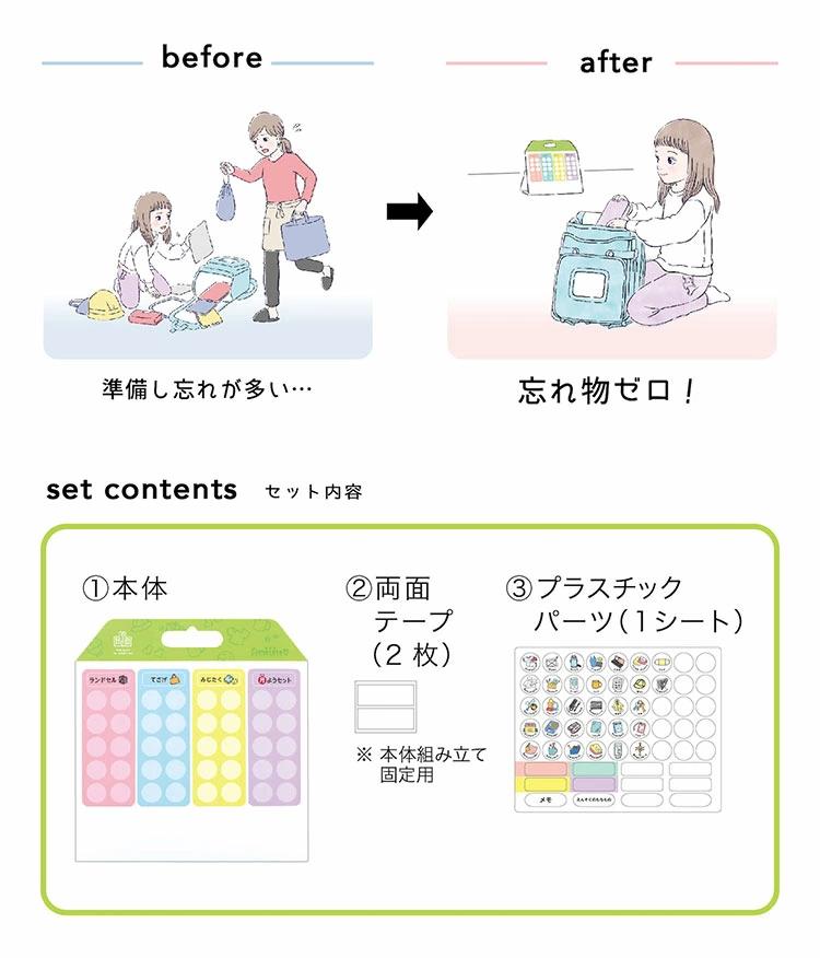 【ライト版ボード】小学生になると準備するものが多くなり、一人では準備し忘れも多発!そんな悩みを解決してくれるこども準備ボードです。ライフスタイルに合わせて選べる4タイプ。持ち物・予定・やるべきことが見える化され、自分でチェックしながら準備ができ、忘れ物もなくなります◎置き場所に困らない紙製コンパクト仕様なので、自立&壁掛けの2wayで使え、省スペースを使って上手に教育ができちゃえます!