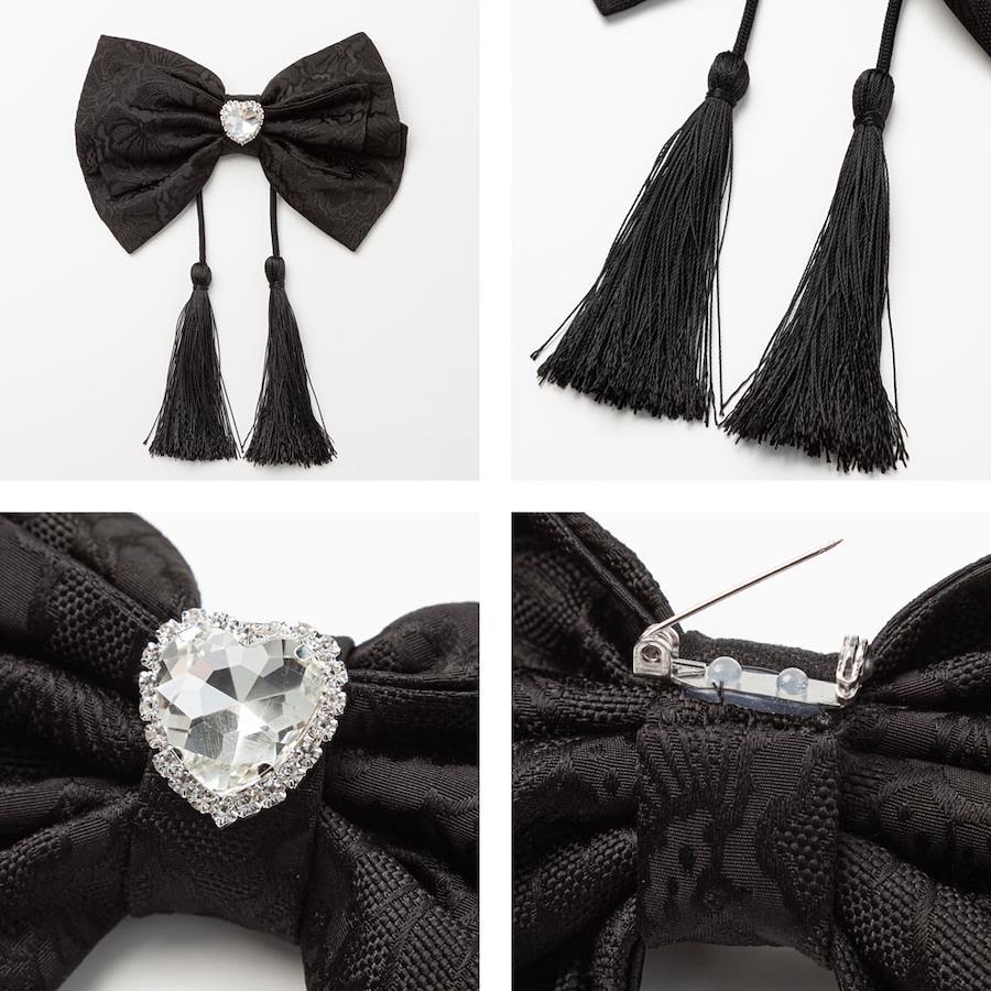 配色部分にはサテンのジャガード生地を使用しています。首元のスナップ釦で着脱可能です。