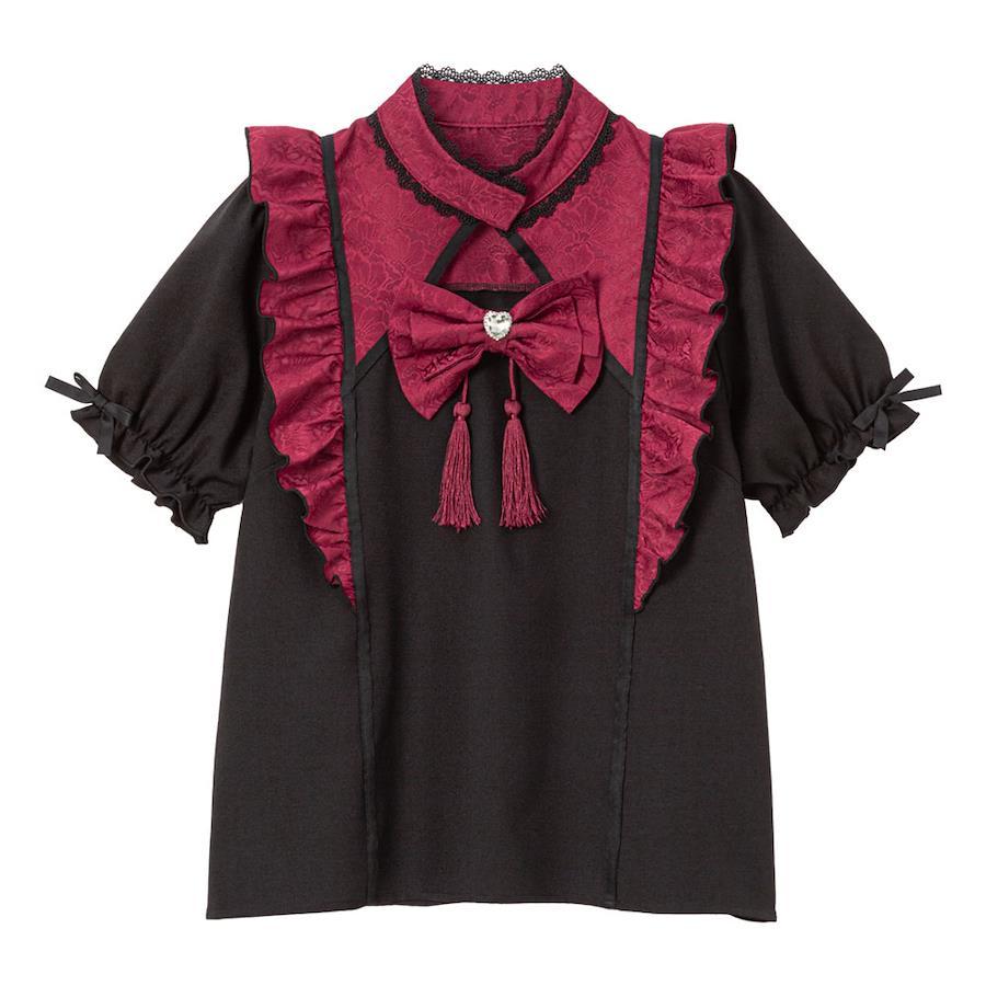 チャイナ柄のジャガードが配色で組み込まれたブラウスです。