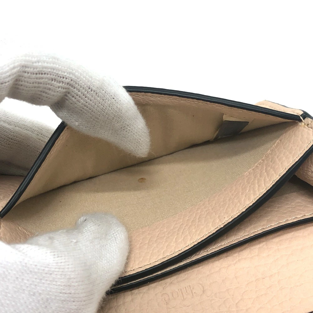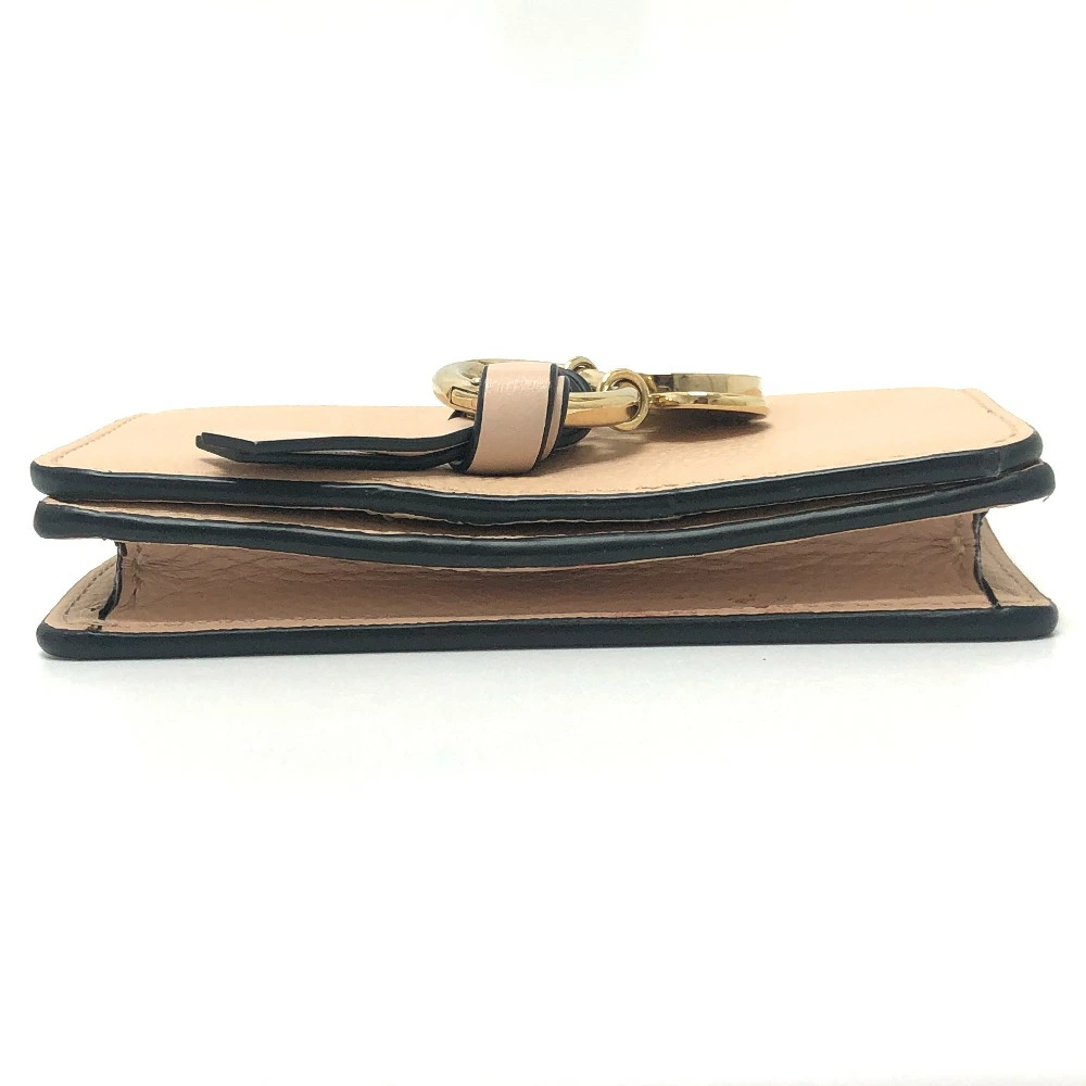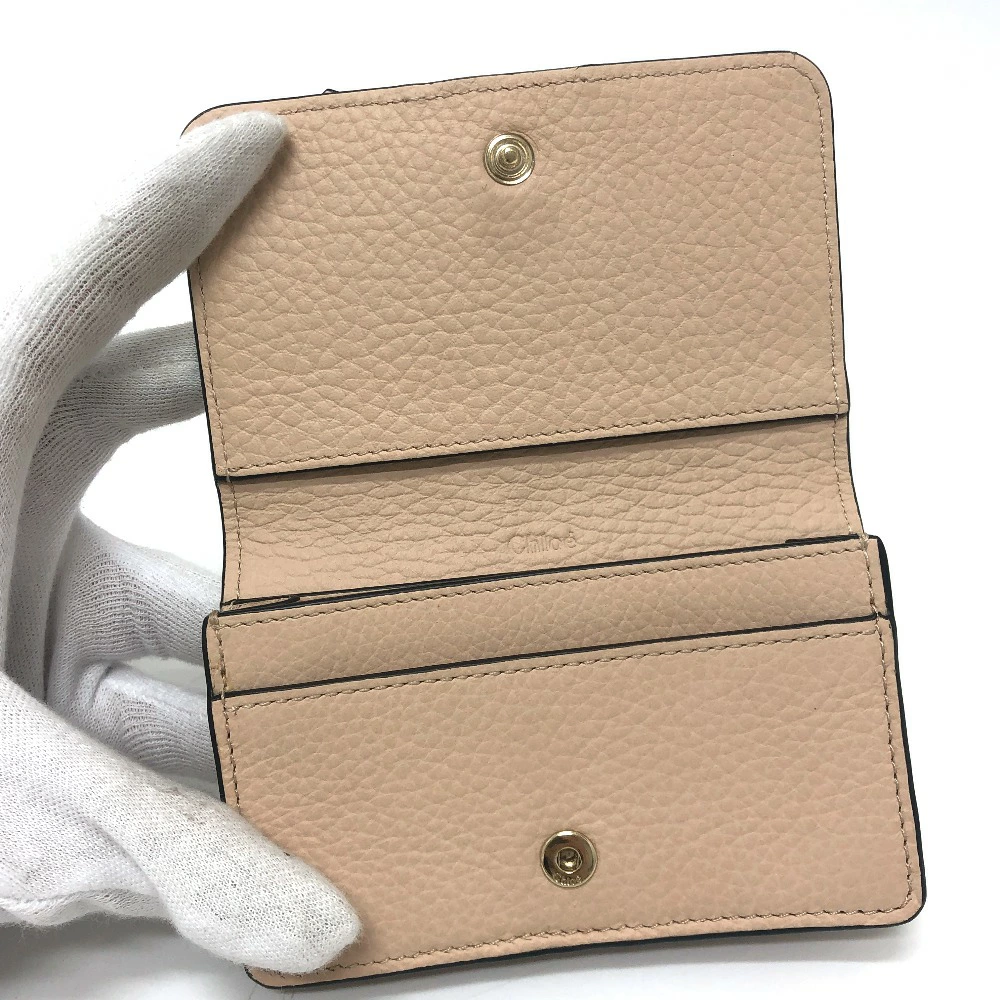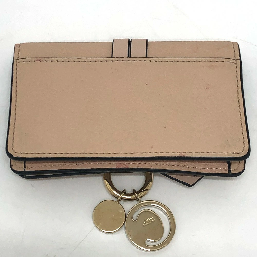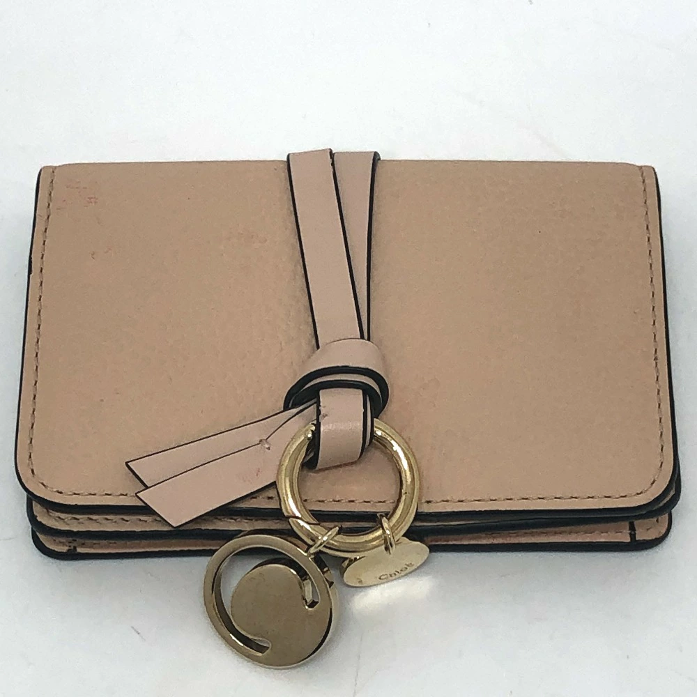 Pre-owned Chloe Alphabet business card holder, card holder, pass case, leather, beige, women's.