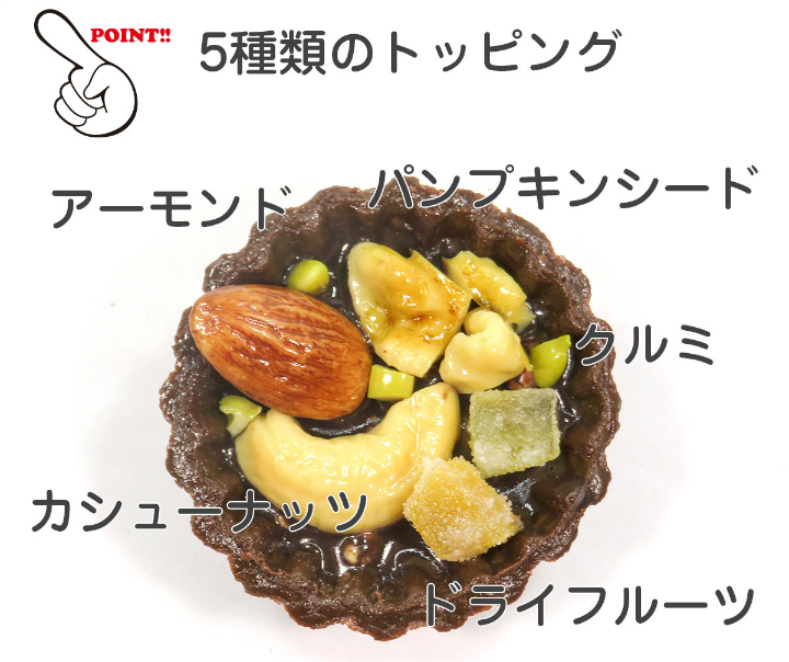 チョコタルトの上に5種類のナッツが乗ったナッツ、