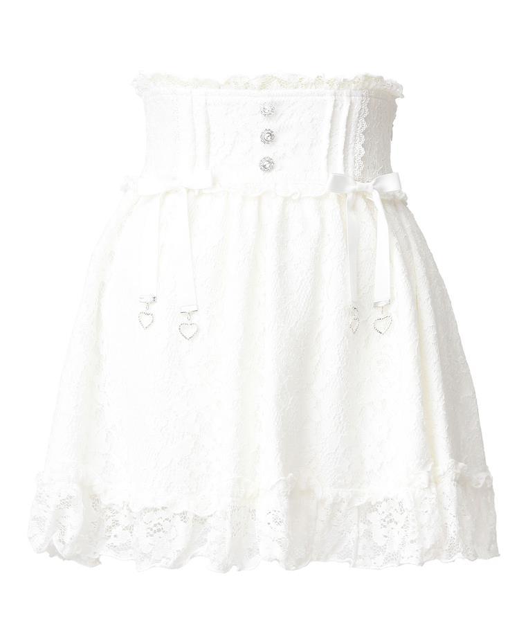 選べる2丈の上品なレースフレアスカートが登場♪【デザイン】上品なレースを使用したフリルたっぷりのスカートです。ミニ丈とロング丈から選べるのでお好みの丈感でコーデして頂けます。ハイウエストデザインなので、スタイルよく見せてくれます。ウエスト部分にはキラキラビジューボタンとリボンがワンポイントになっています。リボンは安全ピンで取り外し可能なので、リボンなしでもかわいく着用できます♪【素材】レース素材と生地を重ねています。本体裏地付きです。ホワイトは同色のインナーを着用をオススメ致します。【コーディネート】上品な大人っぽい雰囲気のコーデにおすすめのアイテムです。ボウタイリボンブラウスやハイネックのブラウスにも合います♪《透け感》なし 《生地の厚さ》普通 《裏地》あり 《伸縮性》なし《生産国》中国