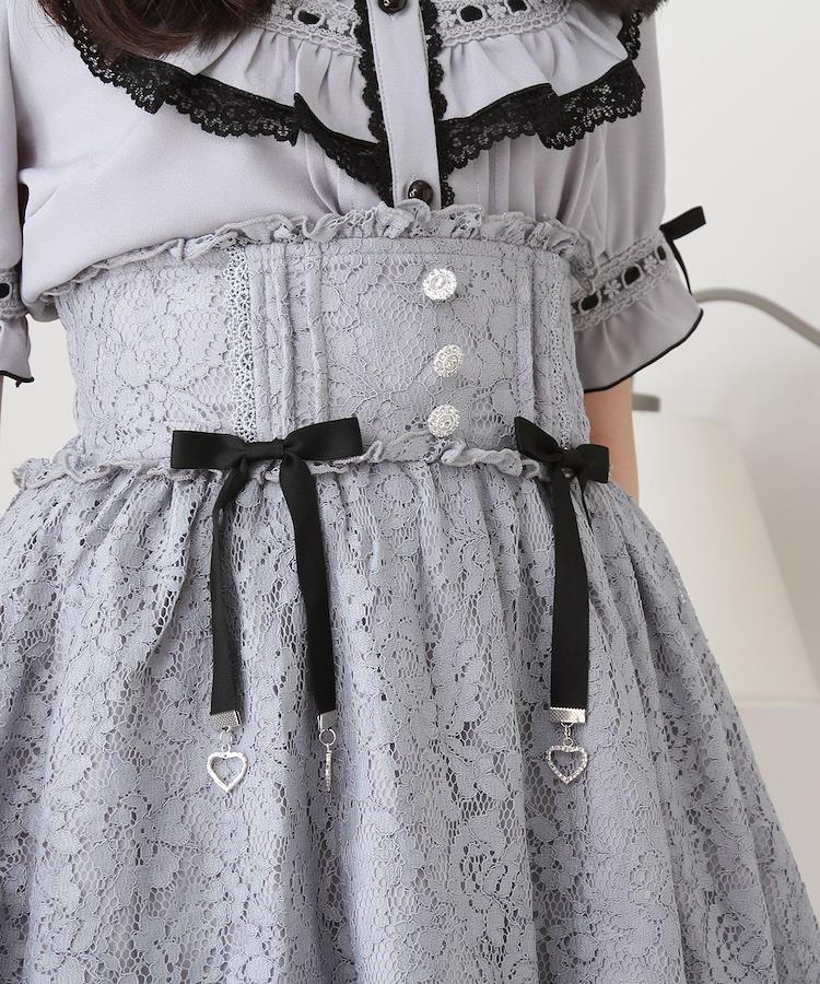 選べる2丈の上品なレースフレアスカートが登場♪【デザイン】上品なレースを使用したフリルたっぷりのスカートです。ミニ丈とロング丈から選べるのでお好みの丈感でコーデして頂けます。ハイウエストデザインなので、スタイルよく見せてくれます。ウエスト部分にはキラキラビジューボタンとリボンがワンポイントになっています。リボンは安全ピンで取り外し可能なので、リボンなしでもかわいく着用できます♪【素材】レース素材と生地を重ねています。本体裏地付きです。ホワイトは同色のインナーを着用をオススメ致します。【コーディネート】上品な大人っぽい雰囲気のコーデにおすすめのアイテムです。ボウタイリボンブラウスやハイネックのブラウスにも合います♪《透け感》なし 《生地の厚さ》普通 《裏地》あり 《伸縮性》なし《生産国》中国