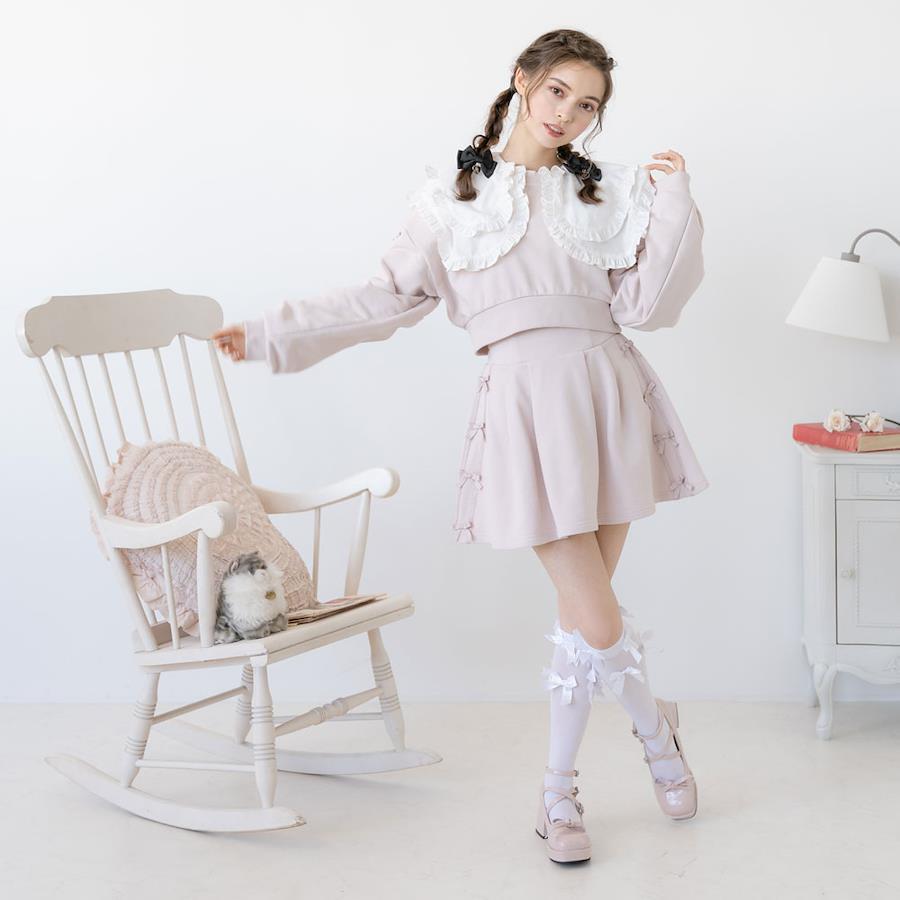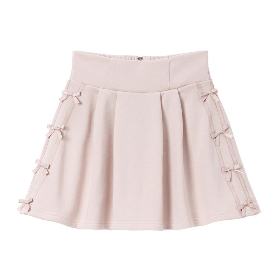 選べるデザインスウェットミニスカートのご紹介。【デザイン】カジュアルガーリーなスウェットミニフレアスカートです。リボンモチーフorハートスタッズの2種類からお好みのデザインを選んでいただけます。サイドラインがちょっぴりスポーティーで、甘すぎないデザイン◎ウエスト巾を広めにしてフロントにはタックを入れて、綺麗なフィット&フレアラインになるように拘りました♪後ろウエストはゴムになっており、後ろファスナーを開けて着脱可能です。着るだけで写真映えするので、アクティブになる春にぴったりな1枚です。