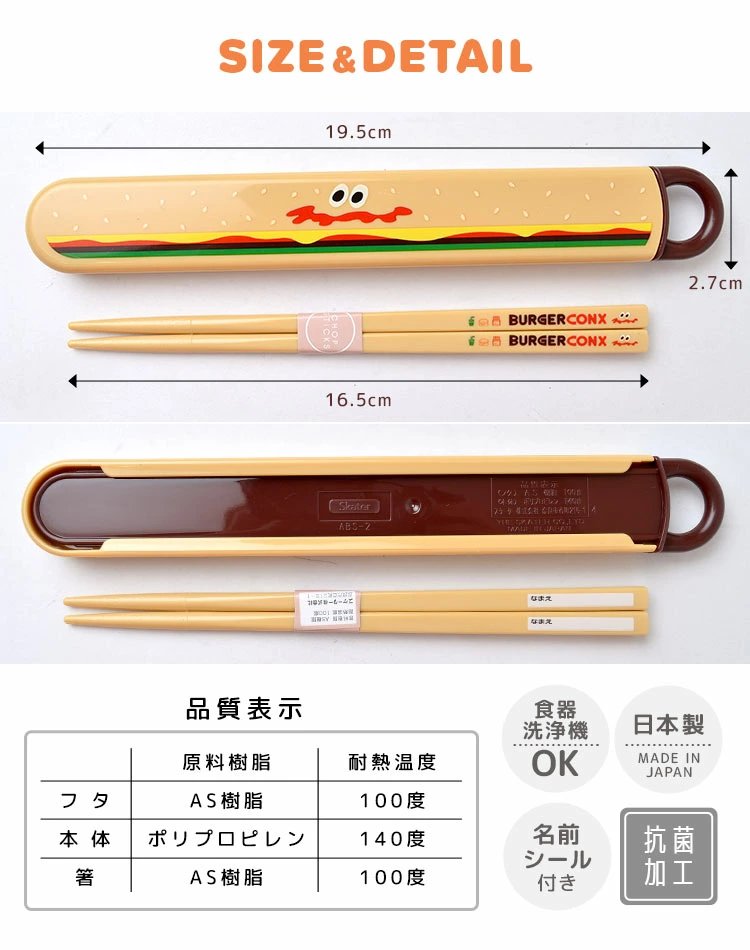 【箸箱セット】食洗器対応!スライド式箸箱セット名入れスペース付き箸で通園・通学に最適♪銀イオン抗菌加工が施されているのも嬉しいポイント!スライドはロック機能付き!最後まで抜けきらないので、小さなお子様にも使いやすい仕様となっております♪
