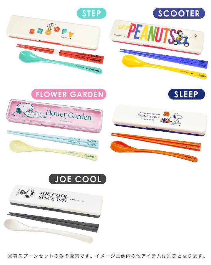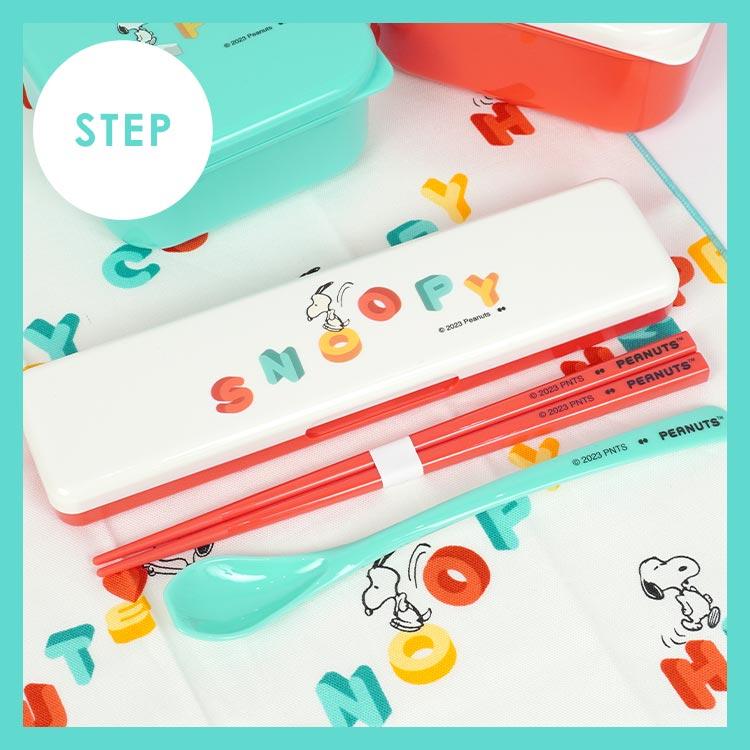 【箸&スプーンセット】ランチタイムの相棒!お箸とスプーンのセット。可愛いスヌーピーデザインで毎日のランチタイムが楽しくなる♪大人も子供も使いやすいサイズ◎ 中皿付きで固定されるから移動中でもかちゃかちゃ音が鳴らないのが嬉しいポイント。 シンプルな構造だからお手入れも簡単! 安心の日本製です。