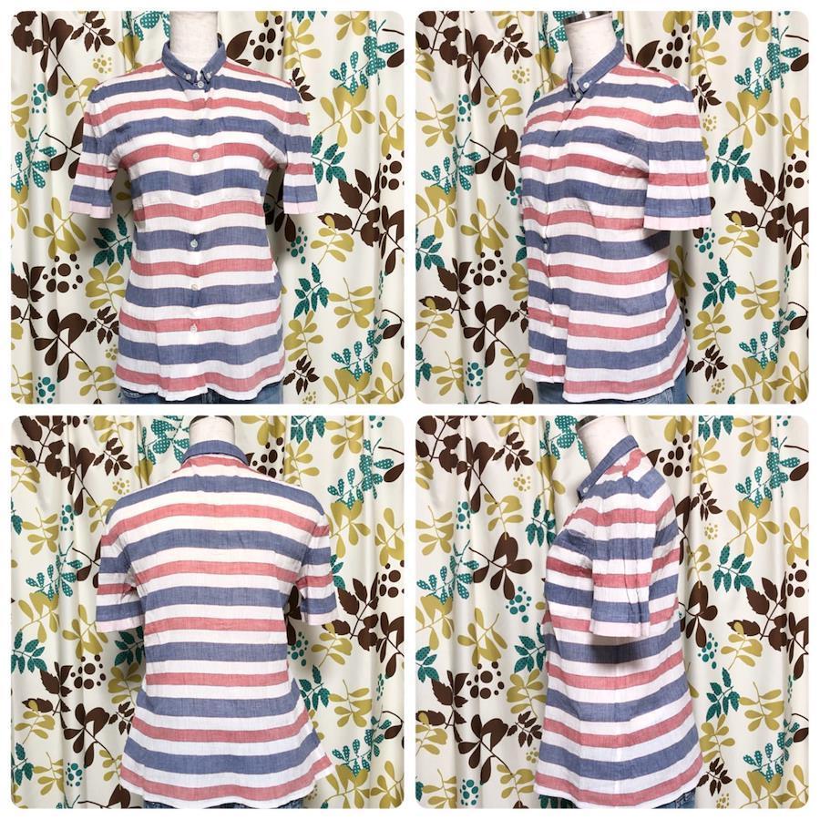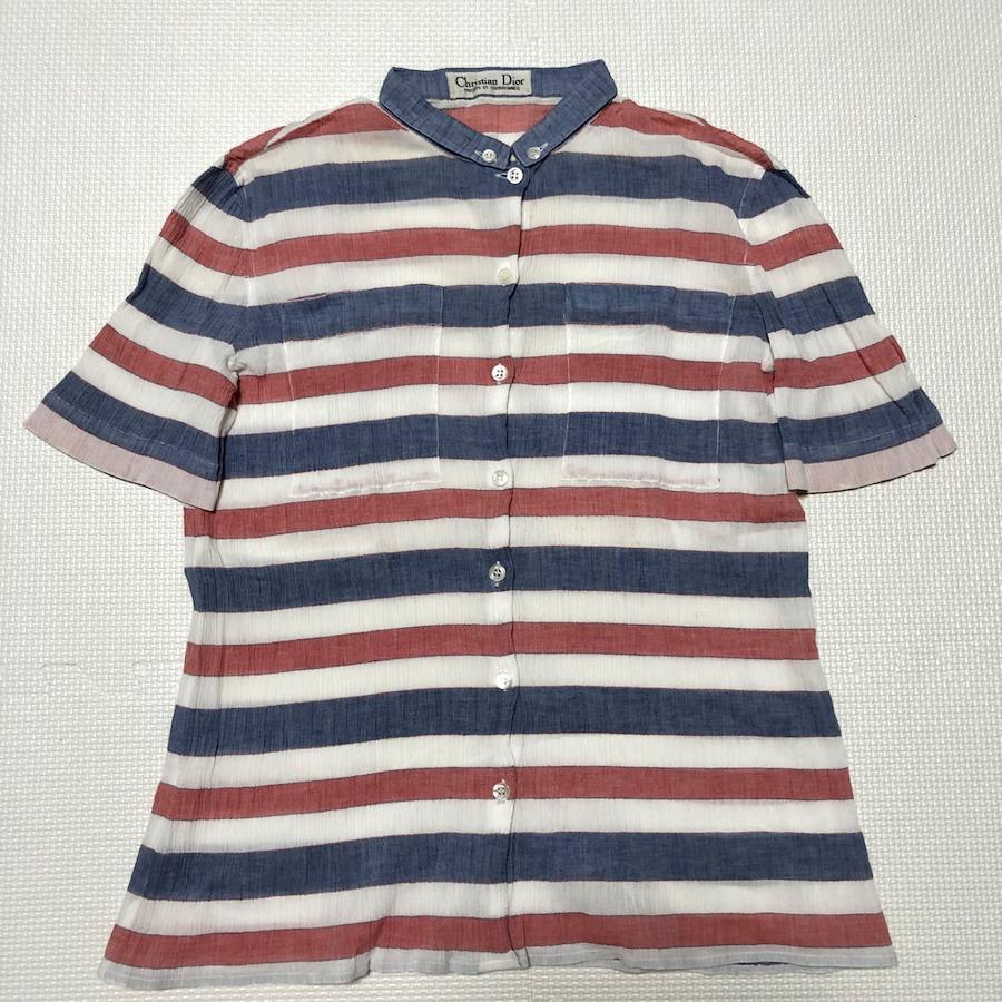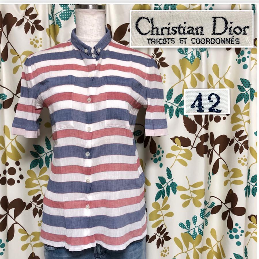 ■商品概要Christian Dior クリスチャンディオールボタンダウンシャツリンクル加工半袖トリコロール ボーダー レッド×ブルー×ホワイトsize42(サイズM相当) ※詳細は下部寸法値を必ずご確認くださいイタリア製コットン100%レディース伸縮性あり ストレッチ素材カネボウ製ラグジュアリー 高級 ハイブランド
