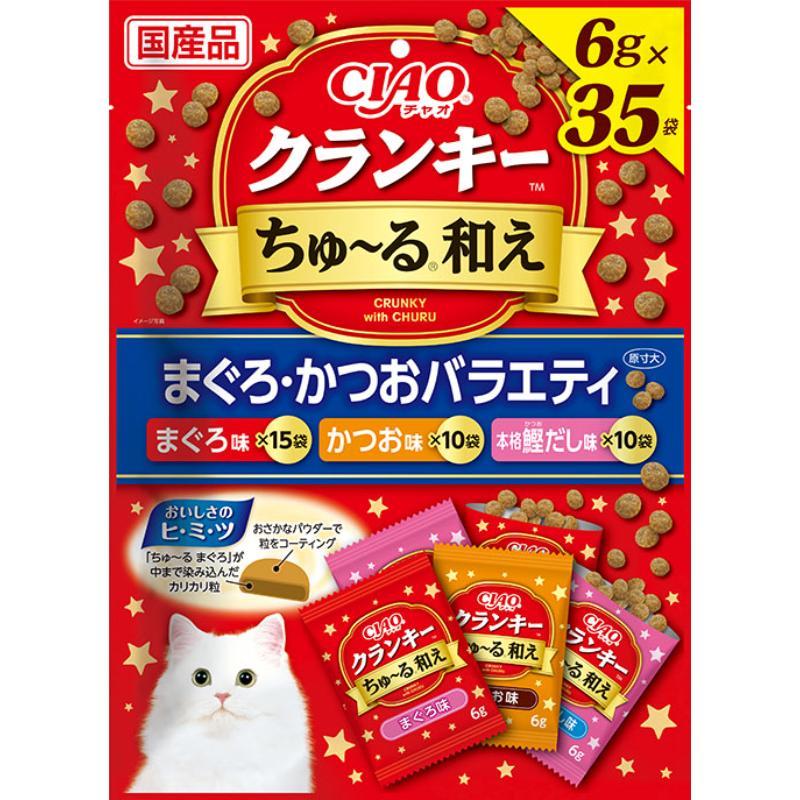 CIAO Crunchy Churu Mixed Treats, 35 bags, Tuna & Bonito Variety, 6g x 35 bags (16 pieces per bag)