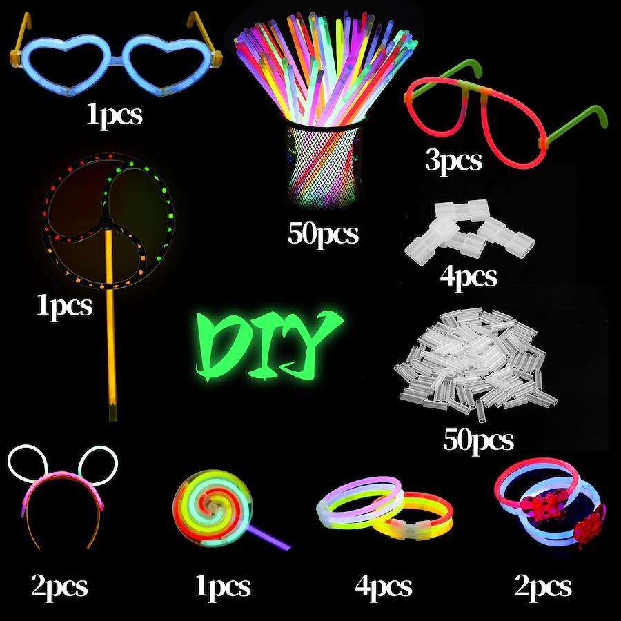 光るブレスレットカラー:8色入り(青、緑、ピンク、赤、黄、オレンジ、紫、白)。入り数:50本。点灯時間:夏期3~8時間、冬期:5~8時間。サイズ:一本約20cm×0.5×0.5cm。DIYに楽しめる:様々な形状のコネクタが豊富に装備されており、風車、ロリポップ、メガネ、カチューシャ、手輪などあります。想像力をフルに発揮し、DIYで様々な形を作ることができます。使用方法:蛍光棒はパキッと折って、上下に振るだけで、たちまち華やかな美しい蛍光が出てきます。(夜は蛍光効果がもっと良いです。)説明書付き:パッケージには各部品の取扱説明書が付属していますから、組み立てが簡単で便利になります。(ご注意:内部には液体があり、破裂することを注意してください。)適用場合:ライブ、コンサートなどのイベント、クリスマス、ハロウィンパーティーなどに最適です!クラブイベント、カラオケ、宴会、お祝い事、夜遊び、縁日、花火大会、お祭り、キャンプ、マジック、学園祭、景品、子供のおもちゃとしても利用できます。【免責事項】メーカーによる商品リニューアルに伴いパッケージ(内容量も含む)変更が行われた場合、新パッケージでお届け致します事ご了承願います。