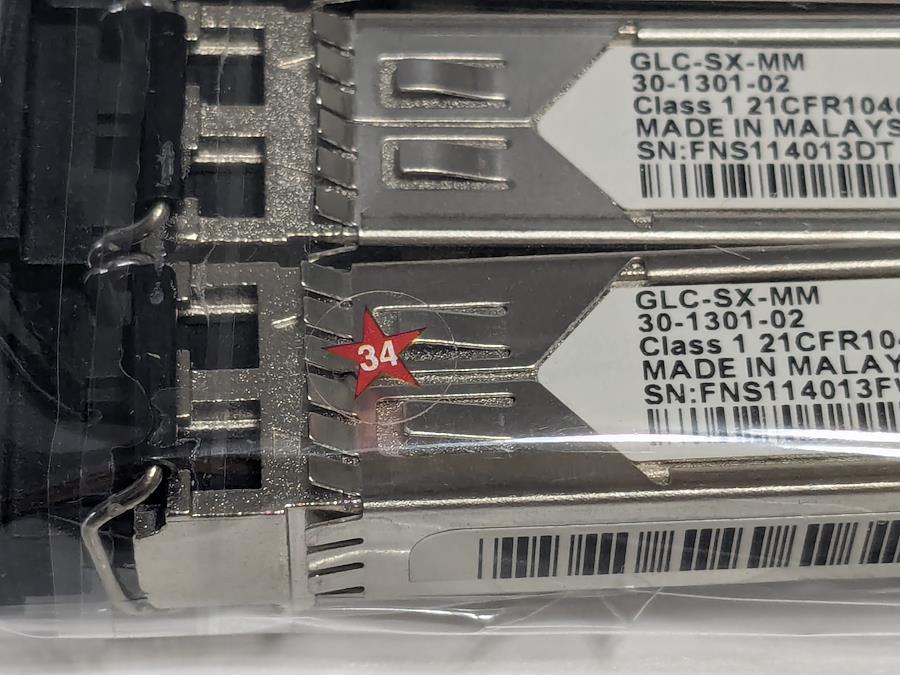 Cisco製 SFPトランシーバーモジュール GLC-SX-MM の4個セットです。ギガビットイーサネット対応のマルチモードファイバー用光トランシーバーで、Ciscoネットワーク機器で広く使用されているモデルです。商品詳細メーカー:Cisco Systems型番:GLC-SX-MMPart Number:30-1301-02通信速度:1Gbps対応ファイバー:マルチモードファイバー(MMF)コネクタ:LC製造国:マレーシア数量4個セット状態中古品です。保管や使用に伴う細かなキズやスレがある場合があります。詳細は写真をご確認ください。付属品写真に写っているものがすべてです。注意事項対応機種や互換性については事前にご確認の上ご購入ください。
