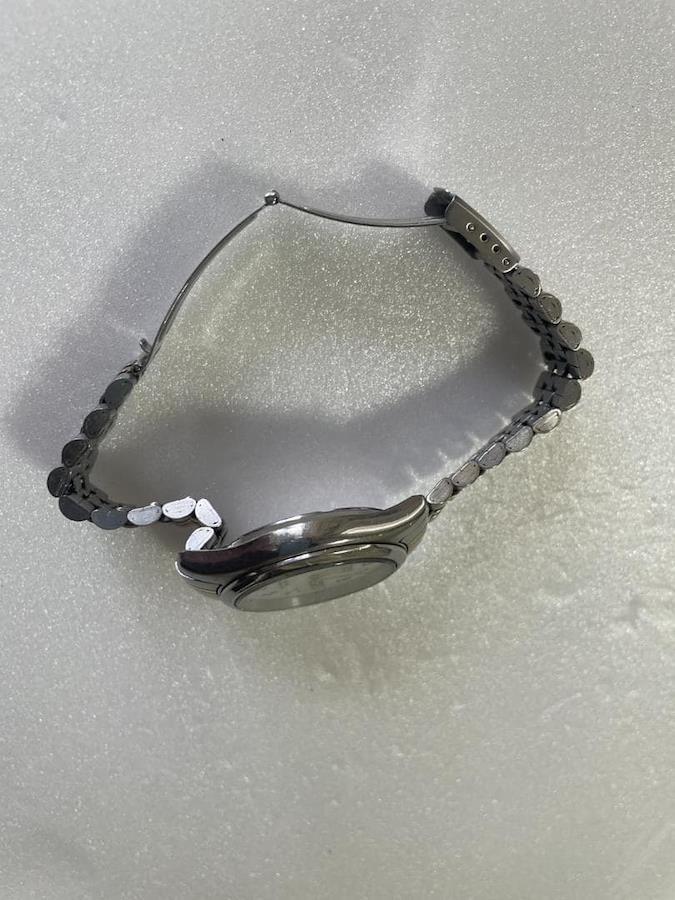 現在、時計は稼働しています(動いています)。ただし、時刻は日本時間に合わせておりません(撮影時のままとなっております)。ご購入後、お手数ですがお客様ご自身で現在の時刻に合わせてご使用ください。