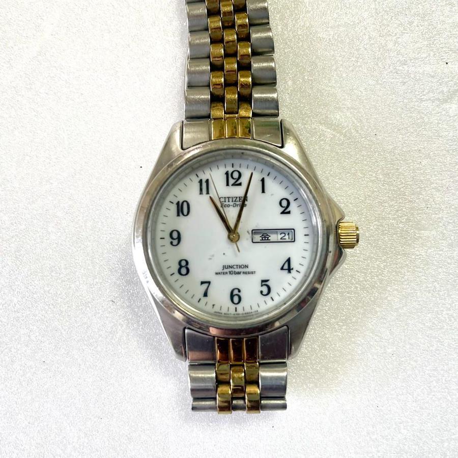 ☆こちらの商品はUSED品ですので新品や未使用品をお求めの方はご遠慮ください。シルバーとゴールドのコンビネーションが魅力的なCITIZENのJUNCTIONモデル、日付表示機能付き。