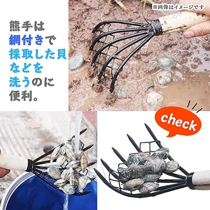 ・熊手は網付きで採取した貝などを洗うのに便利です。