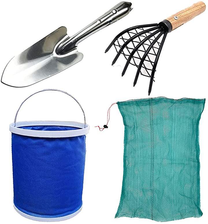 「(なないろ館)潮干狩り4点セット熊手スコップバケツネット貝掘り貝拾いくまでシャベルアサリハマグリマテガイレジャー砂遊び園芸」