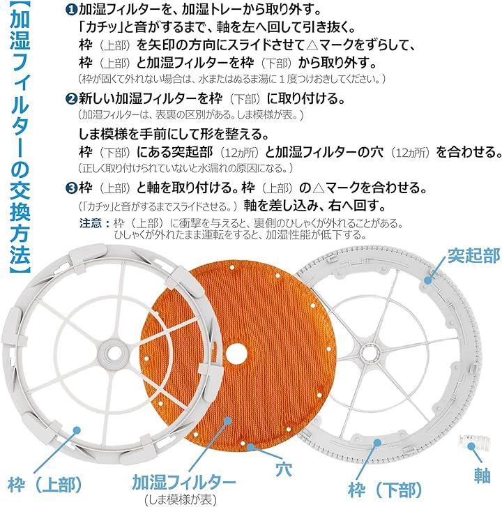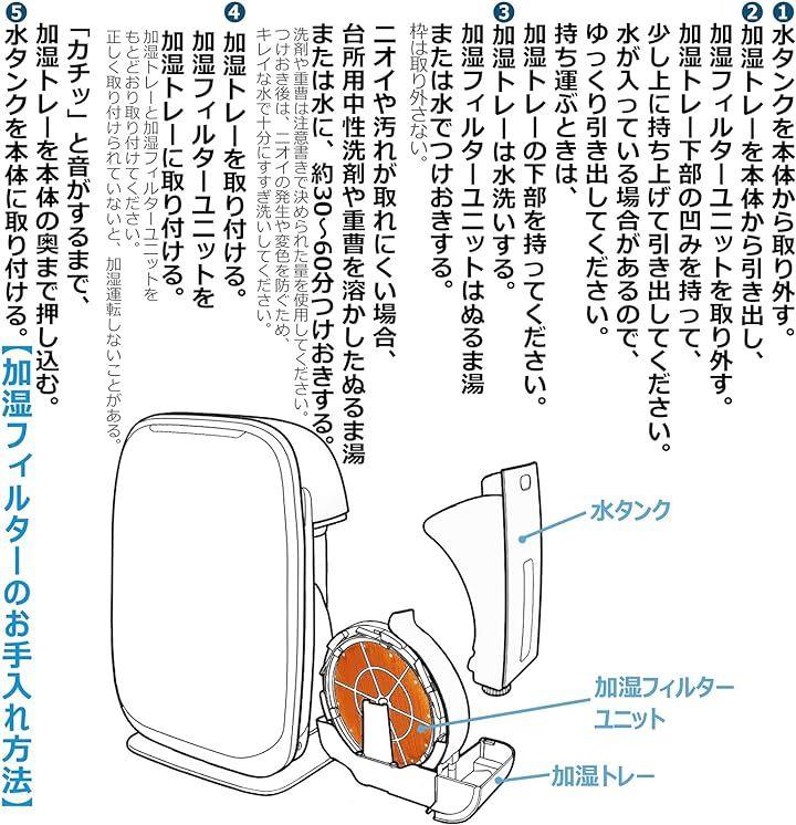 「お手入れ目安」加湿フィルターは約1ヵ月に1度、またはニオイや汚れが気になるとき。