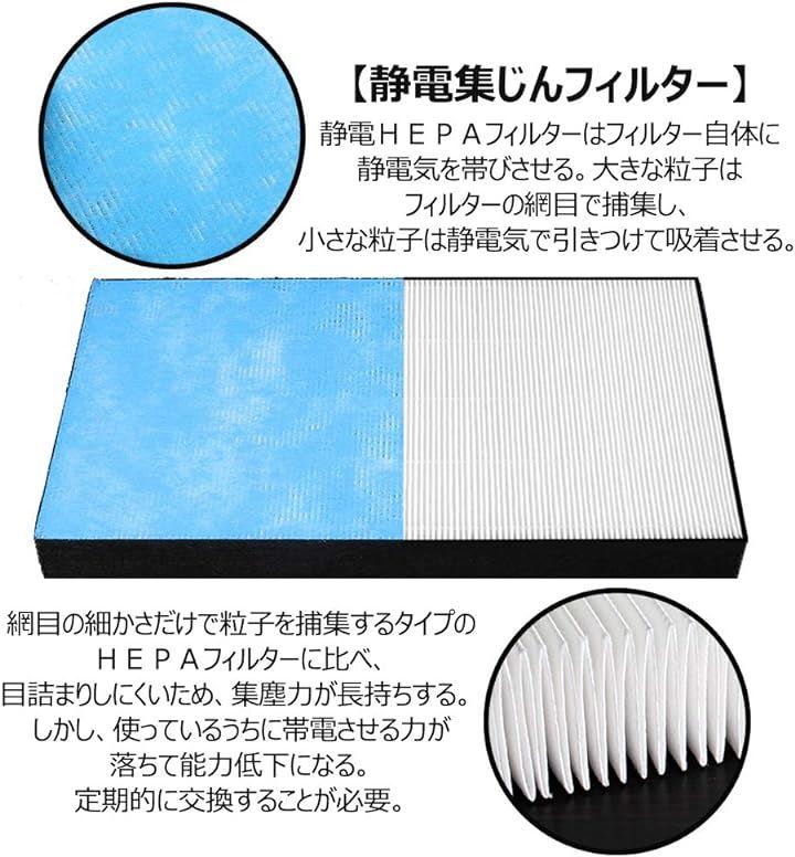 フィルターの特徴:静電HEPAフィルターはフィルター自体に静電気を帯びさせる。