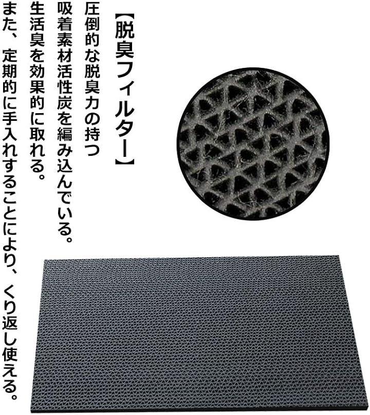 フィルターの特徴:脱臭力の持つ吸着素材活性炭を編み込んでいる。
