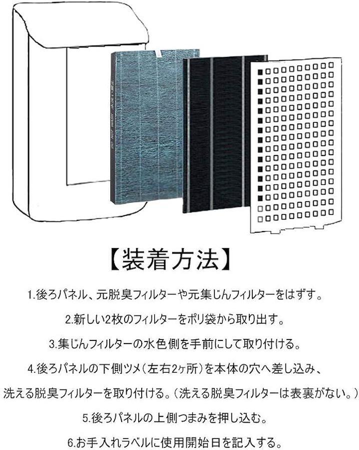 (フィルターはポリ袋から取り出した直後にわずかにニオイがすることがあるが、フィルターの性能には問題がない。