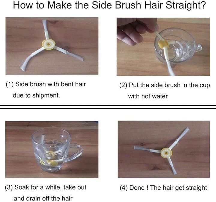 「サイドブラシの注意事項」エッジクリーニングブラシの毛は輸送の不正でちょっと曲がるかもしれないが、温かいお湯で4分ぐらい浸して、取り出して、水気をよく取ります。