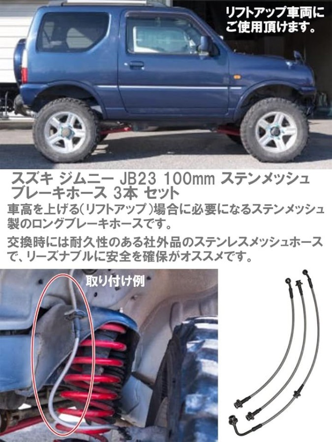 ・スズキ ジムニー JB23 100mm ステンメッシュ ブレーキホース 3本 セットの社外品になります。