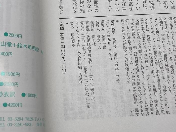 商品名:現代思想 2018年9月号 特集=考古学の思想 青土社 中沢新一