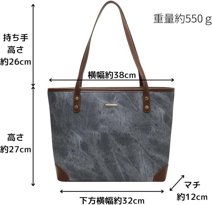 「サイズ」 高さ約27cm、横約32cm、マチ約12cm、持ち手高さ約26cm 「重さ」約550g 「メイン素材」PUレザー