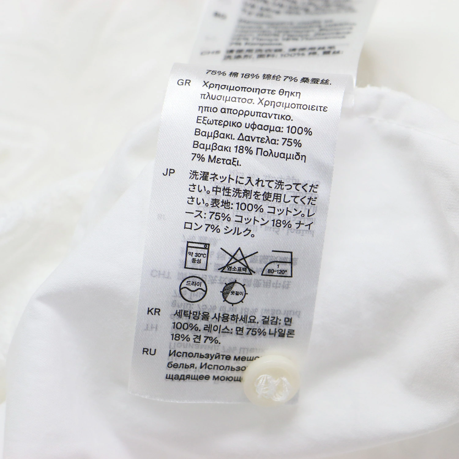 | 素材 | 表地 コットン 100% レース コットン 75% ナイロン 18% シルク 7% |
