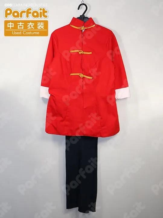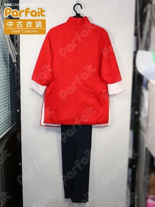 【セット内容】チャイナ服、ズボン、帯【生地の種類】ポリエステル【コメント】自作品の道着衣装です。バスト約99cmウエスト約76cmです。主に厚手の綿ツイル生地で作られています。縫製は比較的しっかりとしていますが、一部生地のヨレや縫製抜け・ほつれが見られます。上着には裏地があり、正面ファスナーと紐留めボタンで着脱します。ズボンの裾は切りっぱなしになっており、一部ギザギザ縫いで端処理されています。