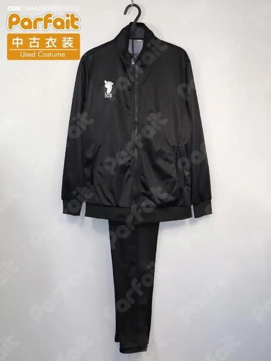 【セット内容】ジャージ上下【生地の種類】ポリエステル【コメント】比較的状態の良い黒のジャージ衣装です。バスト約97cmウエスト約62-85cm(ゴムウエスト)です。背中の文字や胸の模様は刺繍で再現されています。上着は裏地にメッシュ生地が使われておりポケットには実用性があります。