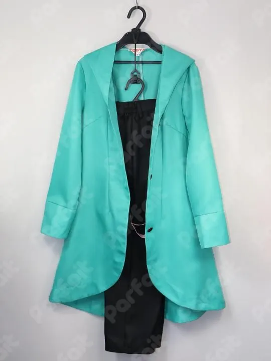 【セット内容】上着、ズボン、首リボン、ベルト、ウィッグ【生地の種類】ポリエステル【コメント】COSYA製。ウィッグが付属した通常衣装です。ブラウスがありません。ズボンはウエストに一部ゴムが入っています。腰の飾りベルトはズボンに一体化しています。独立している長いベルトはフチや装飾部分の合皮に劣化が見られ、表面に割れなどが生じています。(2026/4時点、通常の条件、および生地劣化を事由とする返品は不可)ウィッグは前髪などにカット加工があります。