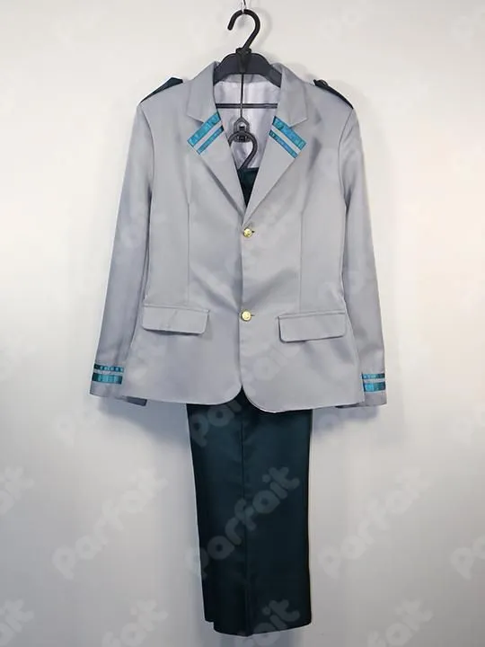 【セット内容】上着、ズボン【生地の種類】ポリエステル【コメント】比較的状態の良いブレザー制服衣装です。ブラウスとネクタイがありません。ズボンはウエスト約78cmで大きめに作られており、ズボンの裾は裾上げテープによる丈詰め加工があります。