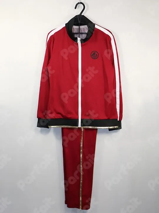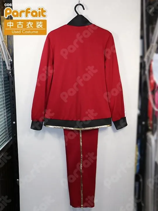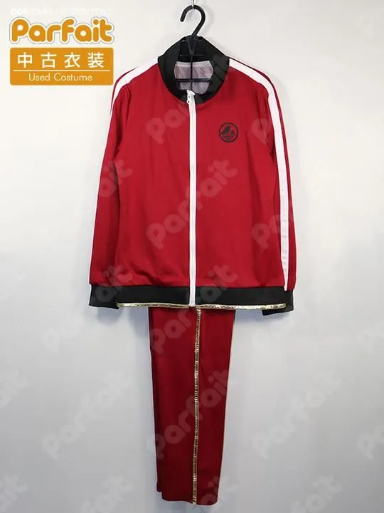 【セット内容】ジャージ上下【生地の種類】ポリエステル【コメント】比較的状態の良い内番ジャージ衣装です。マントがありません。ズボンはゴムウエストでポケットには実用性があります。上着は裏地にメッシュ生地が使われています。金ラインは合皮製で、ズボンのラインに一部劣化による表面剥がれが見られます。(2026/4時点)胸の模様はプリントで、模様のそばに一部黒線のような汚れがあります。