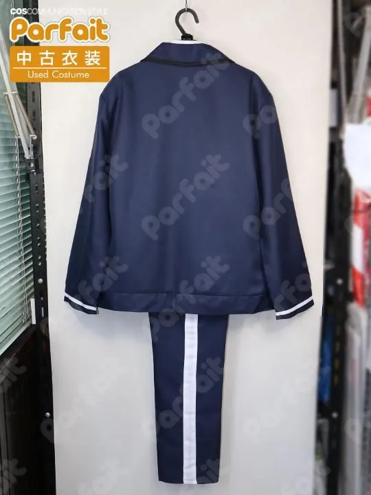 【セット内容】上着、ブラウス、ズボン、首リボン【生地の種類】ポリエステル【コメント】比較的状態の良い内番ジャージです。バスト約103cmウエスト約73cmで上着が大きめです。伸縮しないポリエステル生地で作られており上着には裏地が付いています。袖の模様はプリント布貼り付けで再現されており、貼り付けられている袖が左右反対(鯰尾藤四郎仕様)になっています。