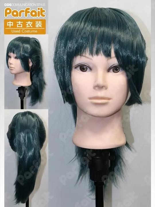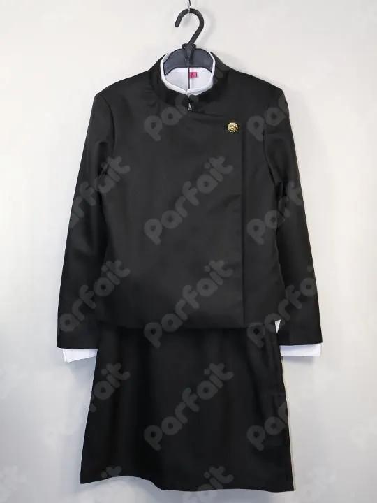 【セット内容】上着、ブラウス、スカート、伊達メガネ、ウィッグ【生地の種類】ポリエステル【コメント】コストモ製。ウィッグが付属した制服衣装です。スカートには一部ゴムが入っています。上着の襟ボタンは特装されており、正面のファスナーやボタンで着脱します。ウィッグは前髪にカット加工があり、ポニーテールウィッグにバンスを取り付けて使用する形状です。伊達メガネはレンズ部分がない仕様です。
