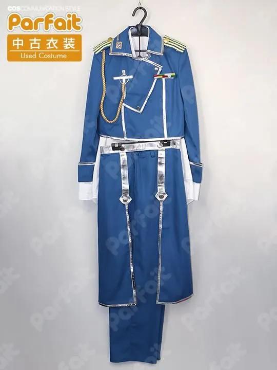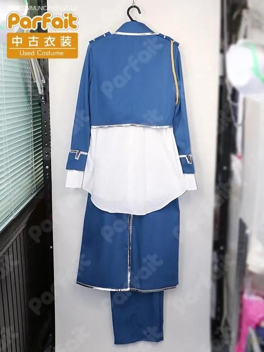 【セット内容】上着、ブラウス、ズボン、腰布、肩章、手袋、ウィッグ【生地の種類】ポリエステル【コメント】ウィッグが付属した青制服衣装です。ブラウスは既製品でサイズが大きめです。銀ラインは合皮製で状態は比較的良好です。(2026/1時点)ズボンはウエストに一部ゴムが入っておりポケットには実用性があります。襟飾りはピンバッジ留めで、襟の内布側で固定されているため着脱できません。手袋の模様はプリントです。キャラにより肩章を変更可能です。ウィッグはクラッセ製のやや茶色がかった黒色で前髪にカット加工があります。