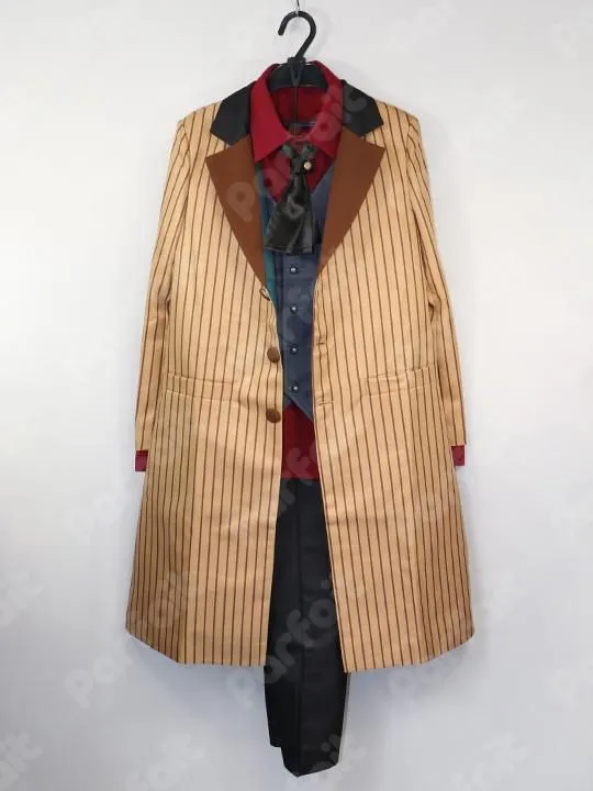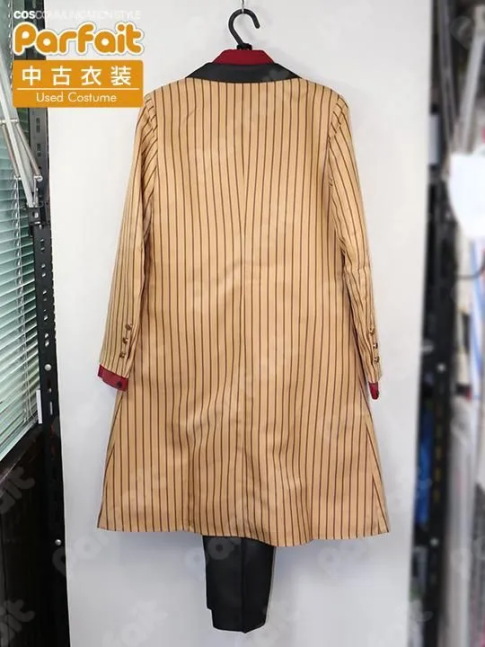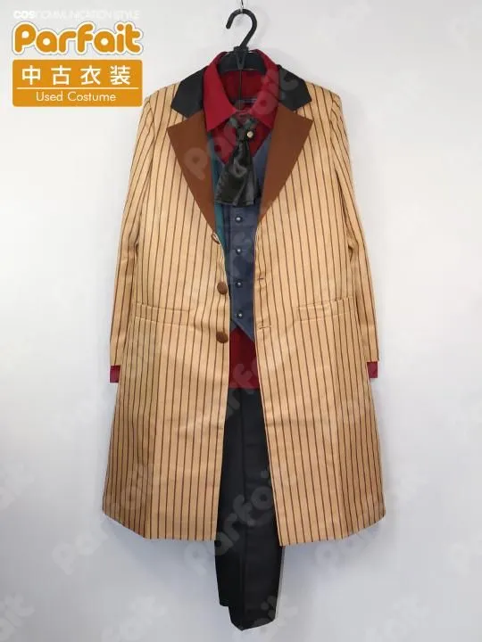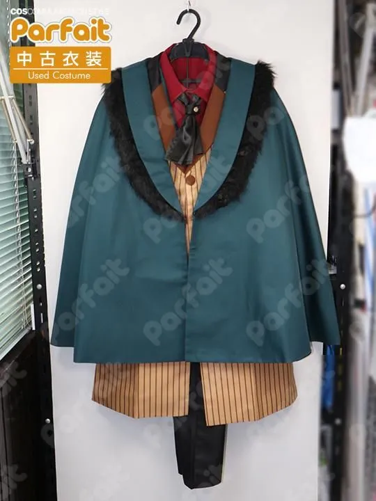【セット内容】ケープ、上着、ベスト、ブラウス、ズボン、スカーフ【生地の種類】ポリエステル【コメント】COSONSEN製。未使用品の3周年衣装です。バスト約84cmウエスト約60cmです。上着のストライプ柄は昇華プリントです。ズボンはウエストに一部ゴムが入っています。マントの襟部分にはボア生地が使われています。スカーフはサテン生地です。