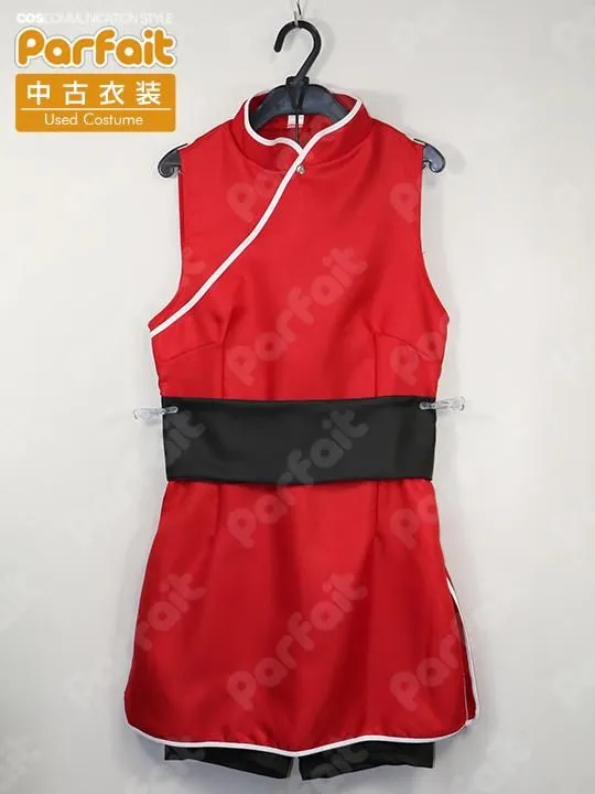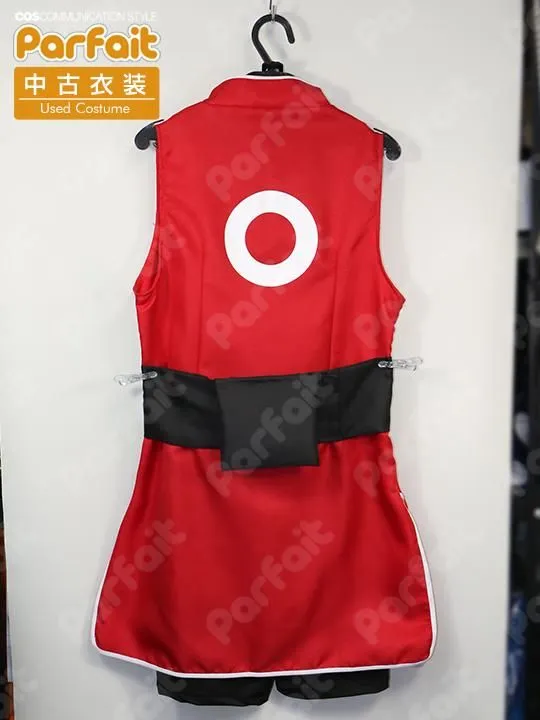 【セット内容】ワンピース、スパッツ、帯、手袋、肘カバー、膝カバー、包帯、はちがね、太ももポーチ【生地の種類】ポリエステル【コメント】状態の良い赤ワンピース衣装です。はちがね(額当て)の模様部分は金属製です。スパッツは伸縮生地で作られておりゴムウエストです。背中の模様はプリントです。