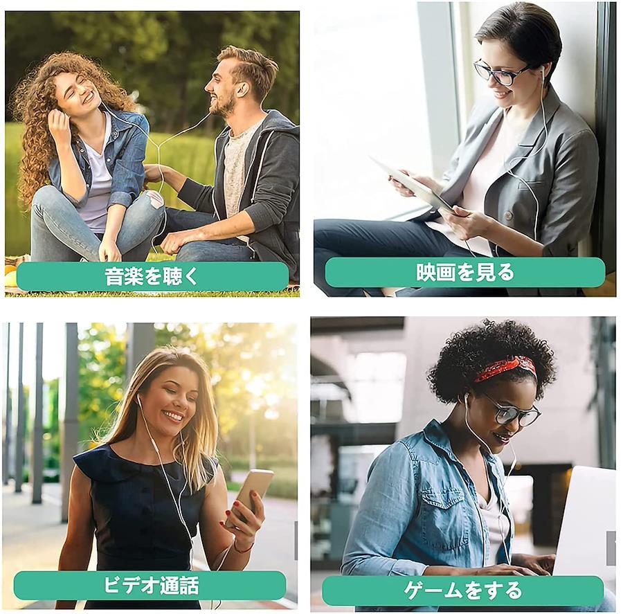 【高音質&ノイズアイソレーション】イヤホン前後の振動膜アップグレードし、高音から重低音まで歪みのなく迫力な音質を伝達します。音楽を最大限に楽しむことができます。高音質ステレオスピーカーは優れる音の表現力と臨場感を再生します。また、遮音性の高いカナル型イヤホンで、音漏れ・ノイズもしっかりカットができ、周囲の雑音に影響されず安心して使用可能です。耳の疲れも減少でき、落としにくいです。【USB TYPE-C端子での接続】USB Type-Cプラグ搭載したデバイスに対応。DACチップセット搭載により、DACチップを使用してデジタルオーディオをアナログオーディオに変換し、ヘッドホンのオリジナルの音質を維持します。【注:本製品がType C 接続端子ですので、TypeC接続端子スマもあり3.5m