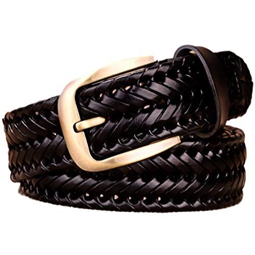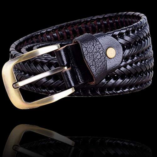 [crbelte] Italian Leather Mesh Belt for Men, Braided Business Design, Genuine Leather, Width 3.5cm, Length 115cm (Black)