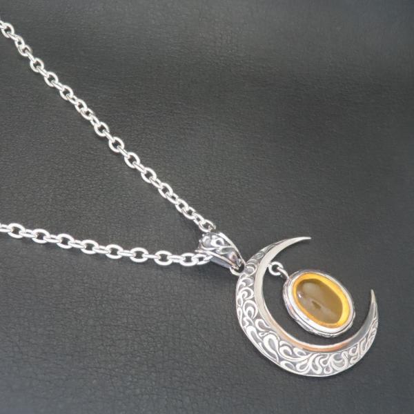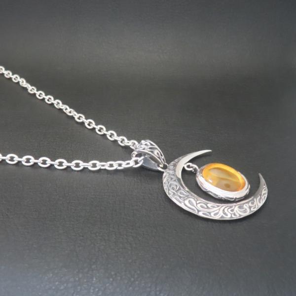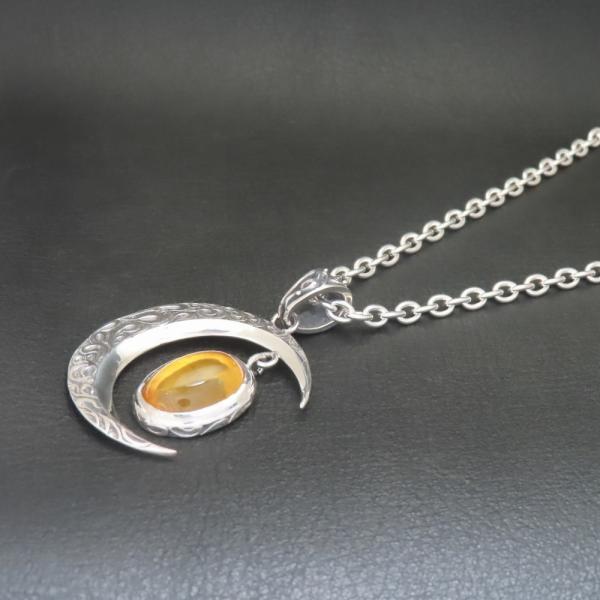 【モチーフ】 三日月、月、ムーン、唐草模様、唐草、アラベスク ◆モチーフ意味 月は「優しさ」の象徴で知性と心の落ち着きを与えてくれます。 また、満ち欠けの周期で姿を変えるため成長の象徴とされています。 唐草模様は、唐草模様は葉や茎、植物が伸びたり絡んだりした植物の模様でツタは生命力が強く、途切れる事なく伸びていく事から「繁栄・長寿」の意味があります。 生命力、永遠に力強く伸びつづけるという、縁起の良いイメージとされてきました。 琥珀は心身を浄化し癒しへと繋げる効果をもつと考えられ、「自然や大地の生命力を、持ち主へ吹き込み、癒しのエネルギーで心を満たす」といわれております。 持ち主のポジティブさを取り戻すお守りとして活用されており、日々の出来事で落ち込むことがあったとき、琥珀の明るい波動を浴びると精神的に安定してくるといわれています。 チャンスをうまく掴めないと感じるときにも、持ち主の行動力をポジティブに変化させてくれるでしょう。 また、美しい黄金色を金運と関連付け、商売繁盛という意味で多くの起業家、商売人に愛されています。 ◆商品名 三日月琥珀ネックレス(PDT-150) ◆素材 シルバー925 スターリングシルバー ◆ペンダント寸法 縦44mm×横33mm ◆ストーン 縦×横=14×10mm 琥珀、アンバー ◆チェーン長さ 35~60cmの中からお好みの長さをお選び下さい。 4.0mmシルバー925小豆チェーン ◆付属品 ジュエリーBOX、ショップ袋、品質保証書 *プレゼント梱包出来ます ◆実店舗 JR帯広駅より徒歩5分の場所にある2012年オープンのフラッグシップショップ。 ジュエリー工房を併設し、常駐する職人自らと打ち合わせも可能なため、修理や加工、お客様のご希望に沿ったジュエリーもお作りすることが可能です。 ◆オススメ使用シーン ・様々な贈り物に プレゼント 贈り物 誕生日 誕プレ 誕生日プレゼント バースデー バースデイ 御祝 御祝い お祝い 母の日 父の日 クリスマス クリスマスプレゼント Xmas 春夏秋冬 成人 成人式 卒業 卒業式 進学 就職 入学 金婚式 銀婚式 出産 結婚 開店 開業 定年退職 退職 移動 転勤 バレンタイン バレンタインデー バレンタインデイホワイトデー ホワイトデイ ごほうび ご褒美 御褒美 ・想いを込めて ありがとう 感謝 ごめんなさい 許して ごめんね よろしく おめでとう おめでとうございます 仲直り ・こんな方に 自分 彼女 彼氏 大切な人 大切な方 お父さん お父様 父親 親父 父 お母さん お母様 母親 母 兄弟 姉妹 子供 おばあちゃん 祖母 おじいちゃん 祖父 奥さん 妻 旦那 旦那さん 先生 生徒 職場 先輩 後輩 上司 部下 同僚 友達 友人
