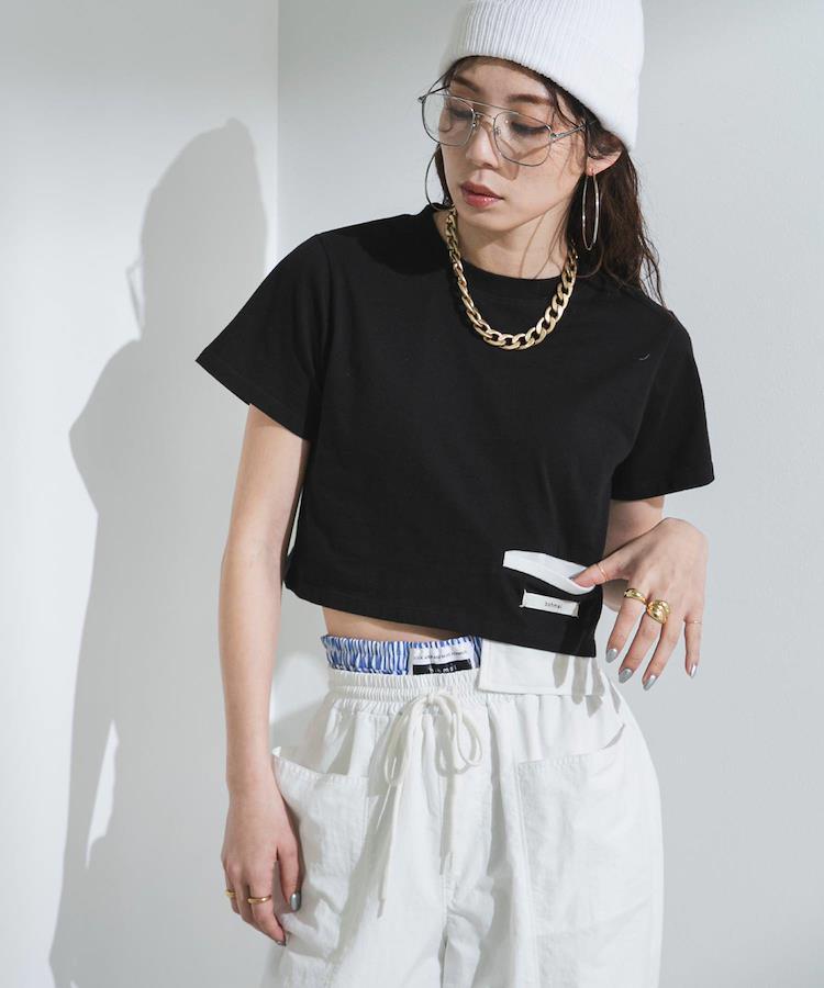 ローウエストのボトムと合わせてさらに肌見せも◯