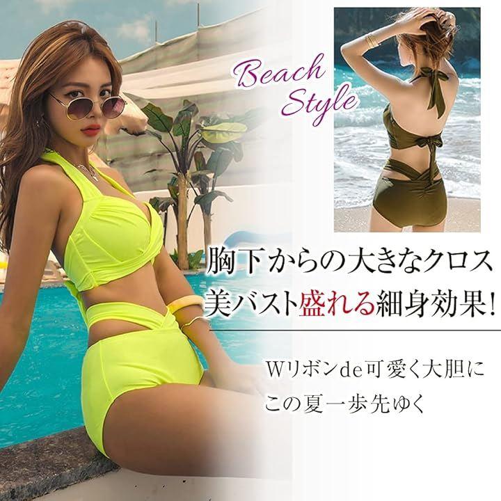 「着痩せ印象とスタイルUPが同時に。」洗練された大人のムードで艶やかに夏を彩る。流行りのツイストビキニに、こだわりのVデザインが施されたミドルハイウエストショーツ、2点セットのお届けです。ブラの「クロス」・ショーツの「V」で着痩せ印象とスタイルUPが期待できちゃう。