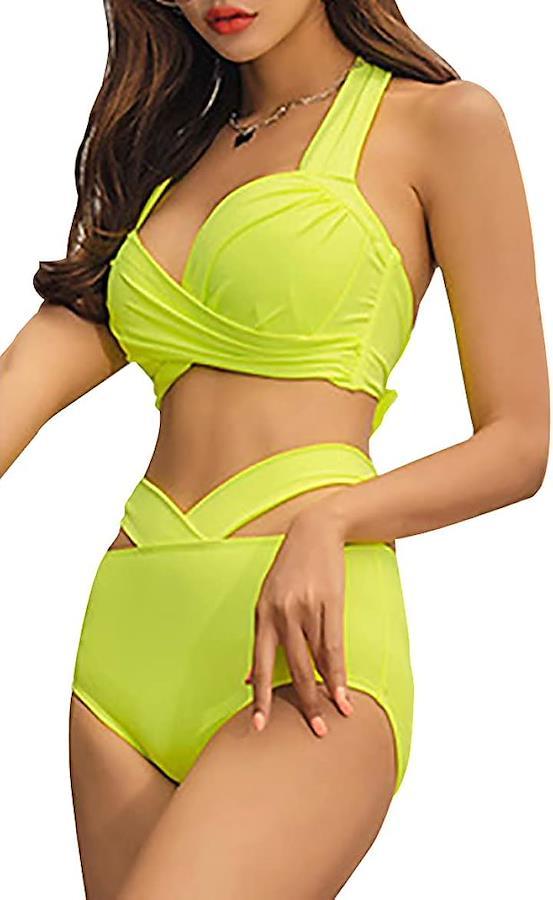 ウエスト細身効果だけでなく、脚長印象も。。腰回り360°スッキリで、着るだけで美スタイルが完成するビキニウェアに。