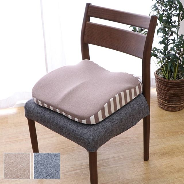 お尻や背中にフィットする立体形状で、長時間座りっぱなしの時の負担を軽減してくれます。シートクッションとしてや、背もたれクッションとして使える2WAYタイプです。ゴムバンド付きでズレにくい。シンプルなデザインで場所を選ばず使用できます。なめらかな肌触りのニット生地で、オールシーズンご使用いただけます。