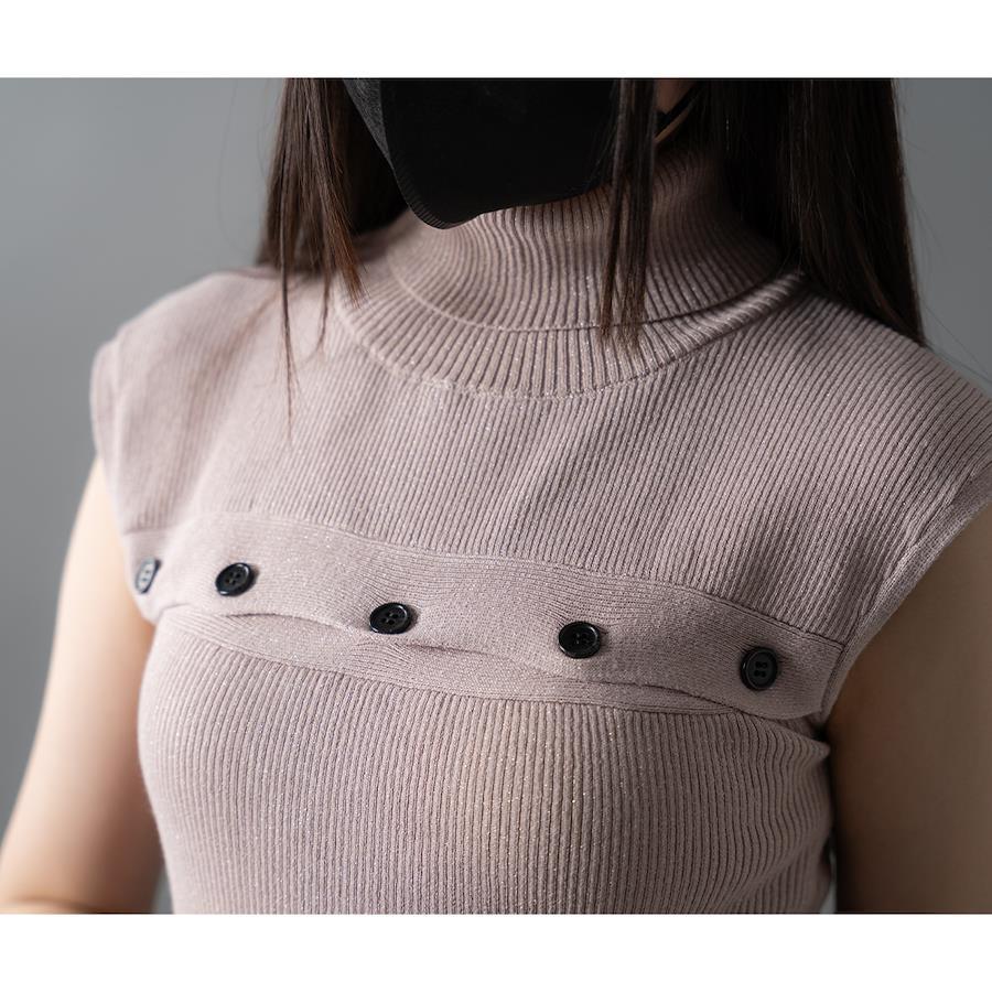 胸元の釦を開けるとほどよい肌見せができ、色っぽさを加速させます。