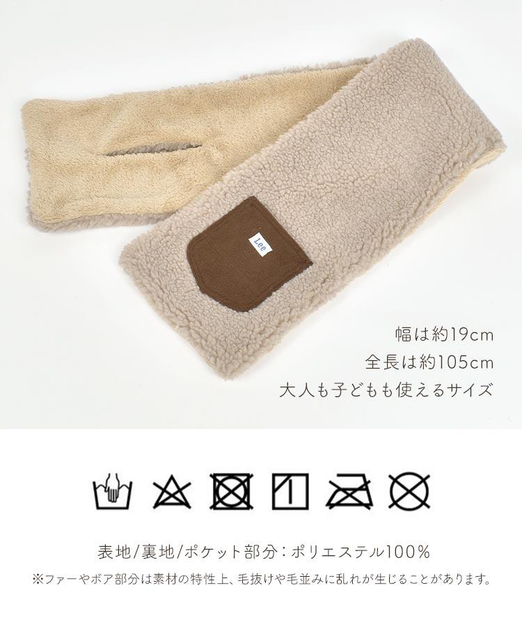 【ボアマフラー Mサイズ】モコモコとしたボア生地がかわいらしいleeのボアマフラーです。スエード生地のポケットがワンポイント。控えめなボリュームで上スリムなシルエット。カジュアルさの中に上品さのあるデザイン◎大人も子どもも装着できます。